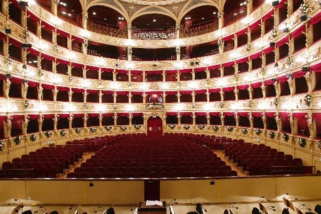 V současnosti sice divadlo nenabízí divákům překvapivou dramaturgii či režijně progresivní inscenace, ale udržuje svůj vysoký standard kvalitními produkcemi oblíbených operních titulů, do kterých angažuje vynikající pěvce. Sezóna se vždy plánuje na kalendářní rok, a v té letošní už zazněly Donizettiho Anna Bolena, Verdiho Bitva u Legnana a Rigoletto, Pucciniho Bohéma, Mascagniho Kmotr Fricek a Lehárova Veselá vdova, na přelom listopadu a prosince se chystá Rossiniho Lazebník sevillský. Mezi sólisty se letos objevili Mariella Devia, Dimitra Theodossiou, Francesco Meli, Julia Novikova, Alexia Voulgaridou či Michail Ryssov. Druhá polovina roku bývá ve znamení další stagiony, a to symfonické – na koncertech budou během ní ve zbytku roku 2012 řídit divadelní orchestr například Oleg Caetani, Wayne Marshall, Will Humburg, Gianluigi Gelmetti nebo Donato Renzetti.K Terstu však kromě opery neodmyslitelně patří také opereta. Až do roku 2011 zde každé léto probíhal prestižní Festival Internazionale dell’Operetta, který v loni uskutečnil dokonce už po čtyřicáté druhé. A proč ne letos po čtyřicáté třetí? Obtížná finanční situace divadla si bohužel vynutila zrušení aktuálního festivalového ročníku, a narychlo nasazená inscenace Veselé vdovy, která původně vůbec nebyla v plánu, měla tuto kulturní ztrátu alespoň částečně nahradit. O tom, jak se to podařilo, jsem měl možnost se přesvědčit 23. června, kdy proběhlo poslední z šesti představení této produkce.