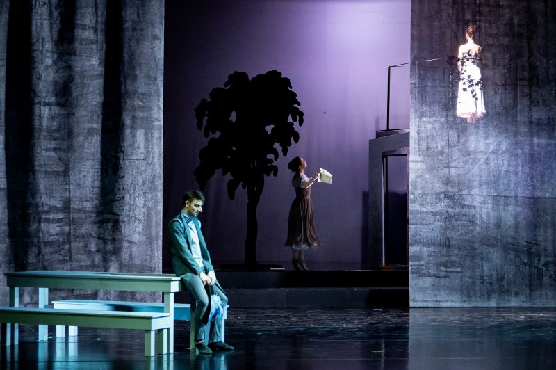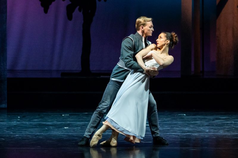 Nastolený styl doslovného vyprávění prostupuje celým baletem a jen s obtížemi se ze školácké gestiky vyprošťuje, ikonickou scénu pod balkonem nevyjímaje. Odvyprávět klíčový obraz tak, aby publikum dobře porozumělo emocionálním i praktickým vazbám v ústředním trojúhelníku, není snadné, ale je to také moment, kdy by měl divák totálně soucítit s Cyranem, obdivovat ho a zamilovat se do něj i přes ten nevzhledný nos. Jenže to se ve Veverkově pojetí neděje. Sledujeme sice několik inscenačních nápadů, které jsou zjevnou snahou scénu režijně zvládnout, ale nedaří se je přetavit do dojetí a hmatatelného milostného pnutí, které by tato scéna měla zprostředkovat v krystalicky čisté podobě. Zamilované pas de trois se zde soustředí spíše na technicistní popis situace a jen občas spěje k úlevnému pocitu naplnění, jež se vždy před vrcholem vrátí zpět do své ulity a nenechá diváka zadržet dech.