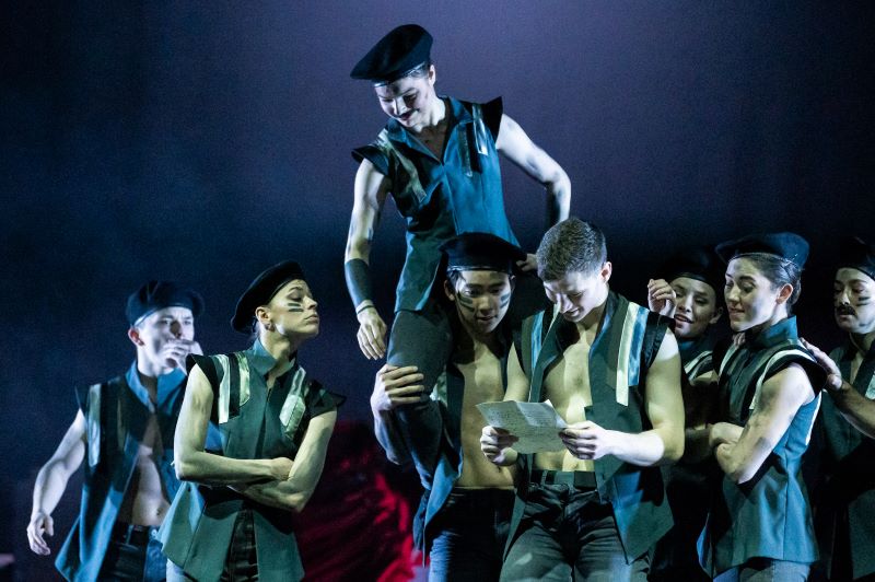 Po přestávce, kdy se posouváme na bojiště a sledujeme první skutečně sborovou scénu, začne z jeviště poprvé vyzařovat energie. Davovost Veverkově choreografii pomáhá a dává jí konečně sílu. Jen kdyby si tanečníci pořád nehleděli svých bicepsů. Je proto škoda, že v poslední části příběhu, kdy se Roxana dostává do kláštera, není využit celý soubor a jeptišky jsou jen tři. Byl by zde prostor pro další sborovou scénu, která by měla potenciál rozbít obligátní střídání jednotlivých výstupů a pantomim.