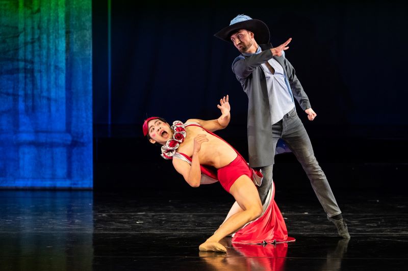 Cyrano sice není jen okouzlujícím příběhem lásky ke kráse ducha a obsahuje řadu komických prvků, i tak ale neustálé předvádění svalů, jež pohybový slovník protkává od prvního výstupu až po závěrečnou oponu, působí trochu jako parodie na soutěž kulturistů. Obzvláště pokud je tak často ztvárňováno ženami v mužských rolích, což je dokonce případ hned první postavy, jež vkročí na scénu. Zprvu se zdá, že jde o záměr, který má funkci v budoucím ději, nicméně nemá. V druhé části inscenace, kdy je potřeba větší mužský sbor, se žen hrajících muže objeví více, a i když se tanečnice snaží o razanci, bojovná mužnost z nich nesálá. Subtilní postavy baletek s vlasy schovanými pod čepec připomínají nezbedné princezny ze štědrovečerních pohádek České televize.