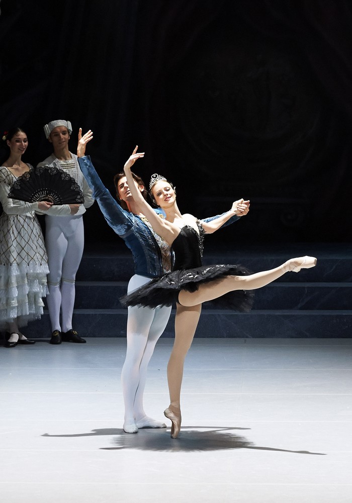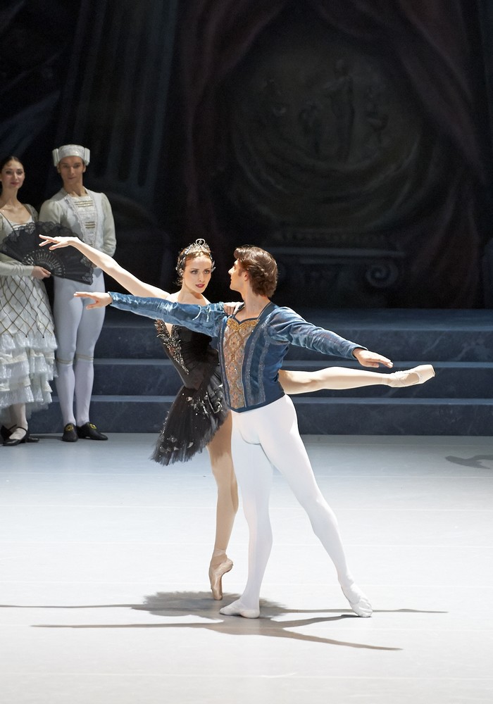 V tejto verzii je ešte hodne v pozadí Rothbart, vďaka efektnému kostýmu výtvarníčky však Andrey Teterin i v málo výstupoch, či iba v behu okolo svojich zakliatych dievok efektne splňuje úlohu protipólu Siegfrieda. Potrebné je spomenúť aj účastníkov Pas de cinq: Alicu Firenze a Kiyoku Hashamoto, obe majú variácie sólové a pánov Masayu Kimota a Richarda Szabó, ktorí majú spoločnú variáciu, kedy obaja v obťažnom choreografickom parte tancovali ako jeden. Súbor precízne i štýlovo predviedol tance národov, ktoré sú „nurejevovské“, priestorovo pôsobivé a technicky zaujímavé. Postupne gradujú i čo do počtu interpretov. Španielsky tanec sú dva páry (jedným z pánov bol Kamil Pavelka), neapolský tanec je šesť dám a sólový pár, poľský tanec štyri páry a maďarský tanec je hudobným i choreografickým vrcholom: osem párov a jeden sólový.
