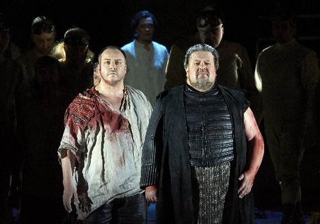 V tejto sezóne sa na javisku stretlo vyrovnané spevácke obsadenie a z hlavných postáv dokonca ani nikto neochorel (opäť narážka na minulú sezónu – veľké očakávania ohľadne vystúpenia Jonasa Kaufmanna v úlohe Parsifala a nakoniec zháňanie náhrady na dve z troch predstavení kvôli jeho ochoreniu). Johan Botha v titulnej úlohe je jeden zo súčasných ideálnych predstaviteľov wagnerovského heldentenoru. Jeho objemný a vo všetkých registroch vyrovnaný hlas s ukážkovou technikou aj frázovaním nesklamal ani tento večer. V úlohe Gurnemanza sa po siedmych rokoch v tejto inscenácii opäť predstavil britský bas Peter Rose. Po úvodných minútach, kedy ešte pôsobil ako keby sa rozspievaval, ovládol svojim hlasom (až na drobné prekrytia orchestrom) javisko a jeho „nekonečné“ monológy sa ani v najmenšom neprejavili na kvalite jeho spevu až do konca predstavenia, čo je jedno z hlavných úskalí tejto postavy. Najväčším prekvapením bol pre mňa Matthias Goerne v úlohe Amfortasa. Jeho mäkko znejúci basbarytón s nádhernou temnou farbou sa počúva veľmi príjemne. Goerne výborne vyspieval Amfortasove lyrické meditatívne pasáže aj dramatické vzopnutia. Po jeho tohtoročnom Wozzeckovi teda ďalší veľmi úspešný debut na pôde Staatsoper. Waltraud Meier je legendárnou predstaviteľkou Kundry, s touto postavou je celoživotne spojená od jej prvého vystúpenia v Bayreuthe (1983), kde si Kundry „privlastnila“ až do roku 1992. Jej interpretácia je zvukovo aj obrazovo veľmi dobre zdokumentovaná na štyroch rôznych CD a troch DVD nahratých v rozpätí viac ako dvadsať rokov. V súčasnosti päťdesiatosemročná Meier je už na sklonku svojej kariéry, jej Kundry je však stále inšpirujúce počuť, práve kvôli dokonalému charakterovému ovládnutiu postavy, rovnako vokálne aj herecky. Inak to nebolo ani tento večer – otázna kvalita spodného hlasového registra, únava v hlase ku koncu druhého dejstva, spojená aj s intonačnou neistotou tónov nad štandardný mezzosopránový rozsah, na druhej strane ale kovovo a zároveň hladko znejúci hlas – ten istý ako na nahrávkach, takže ako celok stále jedna z najlepších súčasných predstaviteliek tejto postavy. Boaz Daniel odspieval úlohu Klingsora bez problémov, napriek tomu sa mi zdalo ako keby pre svojho Klingsora ešte hľadal výraz v hlase. O čo je táto postava menšia minutážou na javisku a množstvom spevu, o to jesť ťažšie vyjadriť jej charakter, čo sa tomuto spevákovi presvedčivo nepodarilo. Blumenmädchen boli aj spolu so ženskou časťou zboru výborne zohrané, sólisticky však ponúkli rôzne hlasové kvality, v jednom prípade aj s nepresnou intonáciou.