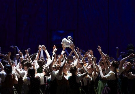 Každá nová produkce Lohengrina je problematická, protože režiséři nevědí, co s labutí, ani co s politickým kontextem. Wagner si přece o ideologické interpretace přímo říkal, když Ortrudu vykreslil jako reakcionářku a domníval se, že teprve prostřednictvím čisté Elsy může dojít k revoluci. Barrie Kosky, který inscenoval Lohengrina ve Státní opeře ve Vídni roku 2005, od této otázky utekl a předvedl scénu se stožáry a jako skládku rozbitých hraček. Byl to propadák.
