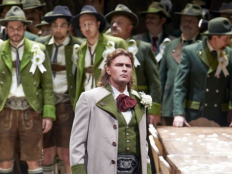 Jednu přednost oproti předchůdci, Lohengrinovi Barrie Koskyho z roku 2005, tato inscenace má: zatímco tehdy se chytré momenty režie postupem doby při dalších obsazení vytratily, dotěrně nepodařená scénická výprava zůstala. To nové inscenaci Andrease Homokiho nehrozí už proto, že zvlášť chytrá není. Wolfgangem Gussmannem minimalisticky nábytkem vybavenému hospodskému sálu se dá prorokovat spíše neutrální kariéra a každý nově příchozí se v něm bude chovat po svém. Když si přece jen zvykneme na jednotné kostýmování – kožené kalhoty a salonní dirndl – zbyde pravděpodobně jen použitelné „nic“.