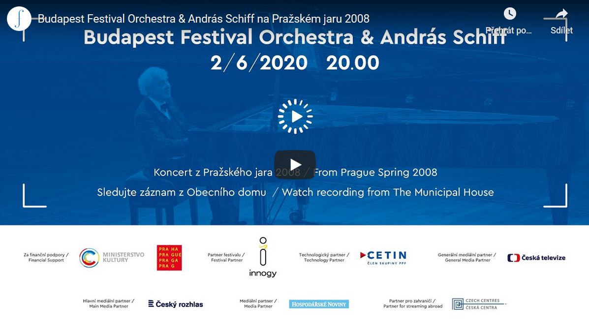 V rámci alternativního programu se vrátíme k jeho prvnímu festivalovému vystoupení, které zachytily kamery České televize. Na závěrečném koncertu Pražského jara 2008 vystoupil spolu s jedním z nejlepších evropských symfonických těles – Budapest Festival Orchestra. Pod taktovkou Ivána Fischera nezapomenutelným způsobem provedl Dvořákův Koncert pro klavír a orchestr. Přenosem prováděla Jitka Novotná.