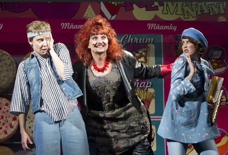 Kráčali sme skôr vlastnou cestou, pôvodnou tvorbou pre deti (čo bolo tiež riešenie), no ukrátiť naše publikum o toto výborné dielo bolo hriechom. Tradične vynaliezavá dramaturgia Štátnej opery v Banskej Bystrici tiež pôvodne zamýšľala uviesť Dubovského Veľkú doktorskú rozprávku, napokon však ustúpila Slovenskému národnému divadla (naplánovanú ju má na december) a učinila správne. Perníková chalúpka, skomponovaná na námet rozprávky bratov Grimmovcov nemeckým skladateľom Engelbertom Humperdinckom, je totiž skutočným formátom opery (nástrojovo bohato vybavený a farebne pestrý orchester),žiadnou kamuflážou, kde aj panenský návštevník spozná špecifiká žánru. Umenie skĺbiť hudobnú bázu s melodickou rečou prístupnou deťom, nájsť potrebné kontrasty v charakterokresbe postáv, je skladateľovi vyškolenom na wagnerovskom princípe vlastné. Premiéru roku 1893 v Dvornom divadle vo Weimare dirigoval vtedy 29-ročný Richard Strauss. Vlastné opery začal komponovať až potom.Bystričania sa diela ujali s veľkou starostlivosťou a umeleckou poctivosťou. Preklad Pavla Smolíka je nový a ľahko aktualizujúci, s čím súvisí aj jeho režijné poňatie. S plným rešpektom voči predlohe sa dal na cestu zvýraznenia jej nadčasovej platnosti a k pointe s večne platnou moralitou. V treťom dejstve Janko s Marienkou nenatrafia na vycifrovaný medovníkový domček, ale na stánok typu McDonald´s s jeho typickým menu. Záver teda vyznieva o to vtipnejšie, že popri vyslobodení strigou zajatých detí a stretnutí s rodičmi, odhadzujú do koša aj všetky nezdravé potraviny. Na režijnom poňatí Pavla Smolíka sa mi páčilo, že nezahusťoval príliš javisko (účelnú, nie zbytočne vyšperkovanú scénu navrhol Jaroslav Valek, autorkou výstižných a efektných kostýmov je Ľudmila Várossová), sústredil sa na kresbu postáv a ich akcie. Každá z nich, či je to detský alebo rodičovský pár a najmä Ježibaba (v tenorovej verzii), prináša oživenie, je herecky plne zaangažovaná a v harmónii spevu a hry vytvárajú príjemný celok.