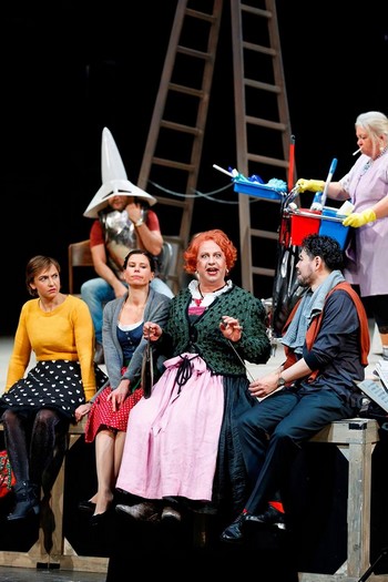 Dirndl a Hvězdné války? Ale ano. Rolando Villazón si nechal od Alexandra Kuchinky pro svůj vídeňský debut pořídit vlastní verzi existujícího překladu. Takže se hraje v provinčním divadle současnosti, ze skladatele a libretisty se stali dirigent a režisér. Což nabízí na scéně Friedricha Despalmese a uprostřed hustého hemžení personálu pointy, kterých kupodivu přesto není nikdy příliš, všemožné příležitosti pro kousavé poznámky a gagy – a v italsky zpívané „opeře v opeře“ se to dokonce promění v jakousi výpravnou sci-fi revue. Kdo očekává perlivou Donizettiho buffu bude ovšem spíše zklamán, německý zpěvní text nadto klade nepříjemné překážky a pěvecká úroveň není vždy vyrovnaná: Anja-Nina Bahrmann dává jako primadona každopádně zaznít skvostným tónům a Julia Koci jí slušně sekunduje jako Agatina dcera Luisa.