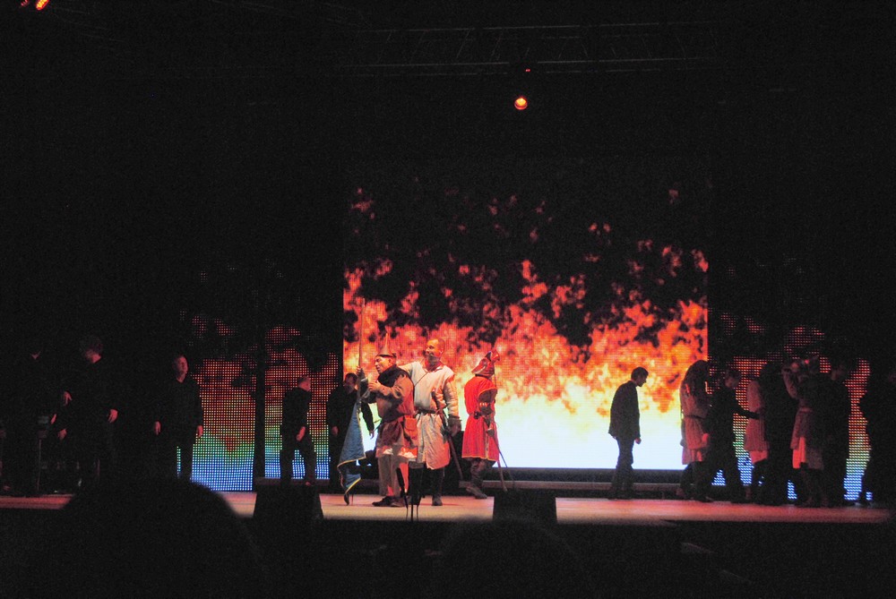 Giovanna d´Arco sa neobjavila na Slovensku po prvýkrát. Mala však až teraz premiéru v javiskovej verzii. Prvé uvedenie bolo v Žiline v roku 1991 s Martilou Rowland v titulnej úlohe (tu sú údaje roku a interpretky v bulletine nesprávne) a zhodou okolností post zbormajsterky zaujala vtedy dnešná prezidentka festivalu, vystupujúca ešte pod menom Katarína Bezáková. Dirigovala známa Newyorčanka Eve Queler. Po druhý raz sa dielo objavilo v rámci Zámockých hier zvolenských pred štyrmi rokmi s Adrianou Marfisi v úlohe Giovanny a pod taktovkou Mariána Vacha. Práve on, ako puncovaný verdiovský dirigent, bol hudobným garantom novej inscenácie. Na čele Festivalového orchestra z Banskej Bystrice pripravil koncepciu v tempách a dynamických proporciách zodpovedajúcu duchu partitúry. Giovanna d´Arco síce bola komponovaná v chvate (Verdiho zaväzoval zmluvne podpísaný termín s milánskou La Scalou) a podľa osvedčenej schémy, no má pomerne delikátnu inštrumentáciu a originálne harmonické kombinácie. Nájdeme v nej pomerne veľa lyrických plôch, no nechýbajú kontrastné dramatické vzopätia, aj keď typických cabaliet, končiacich efektnou výškou, je pomenej. Keďže orchester bol umiestnený po ľavom boku javiska a dirigentský pult v pomyselnom priesečníku výhľadov, musel Vach svoje gesto „rozdeliť“ medzi javisko a inštrumentalistov. Bystričania hrali zodpovedne, presne, aj keď trocha viac ohňa by hudobnému poňatiu v istých dramatických kulmináciách nezaškodilo. Veľký zborový part naštudovala Iveta Popovičová a vďaka pomerne kvalitnému ozvučeniu zneli inak „komorní“ Bystričania kompaktnejšie ako bez mikrofónov.Vizuálna stránka bola v rukách režiséra Michala Babiaka a scénografa Petra Janků. Pomerne rozľahlé javisko nedopovali kulisami, ale atmosféru rozohrávali projekcie. Moderná svetelná technika umožňuje dynamicky meniť vzhľad scény a sledovať tok deja. Nie je to však metóda samospasiteľná. Treba ju vedieť skĺbiť s komplexnou javiskovou akciou, plynulo prepojiť desiatky premietaných obrazov s reálnym životom postáv.