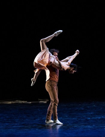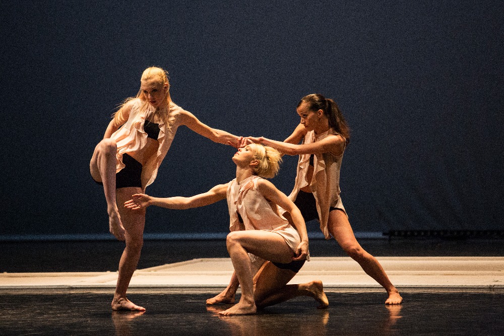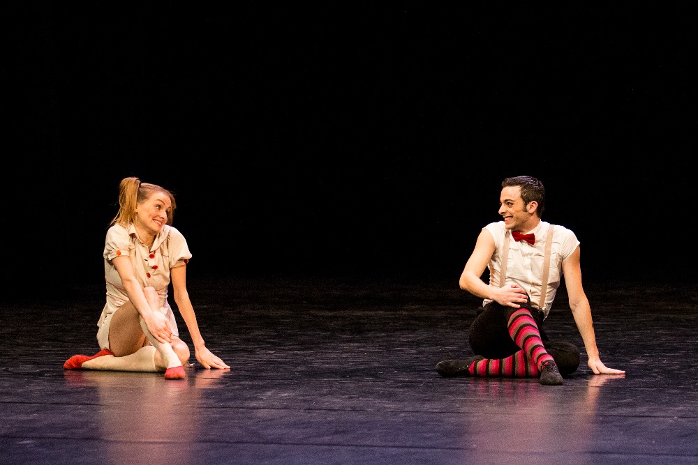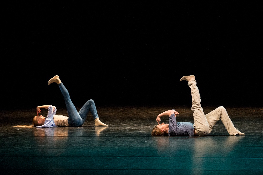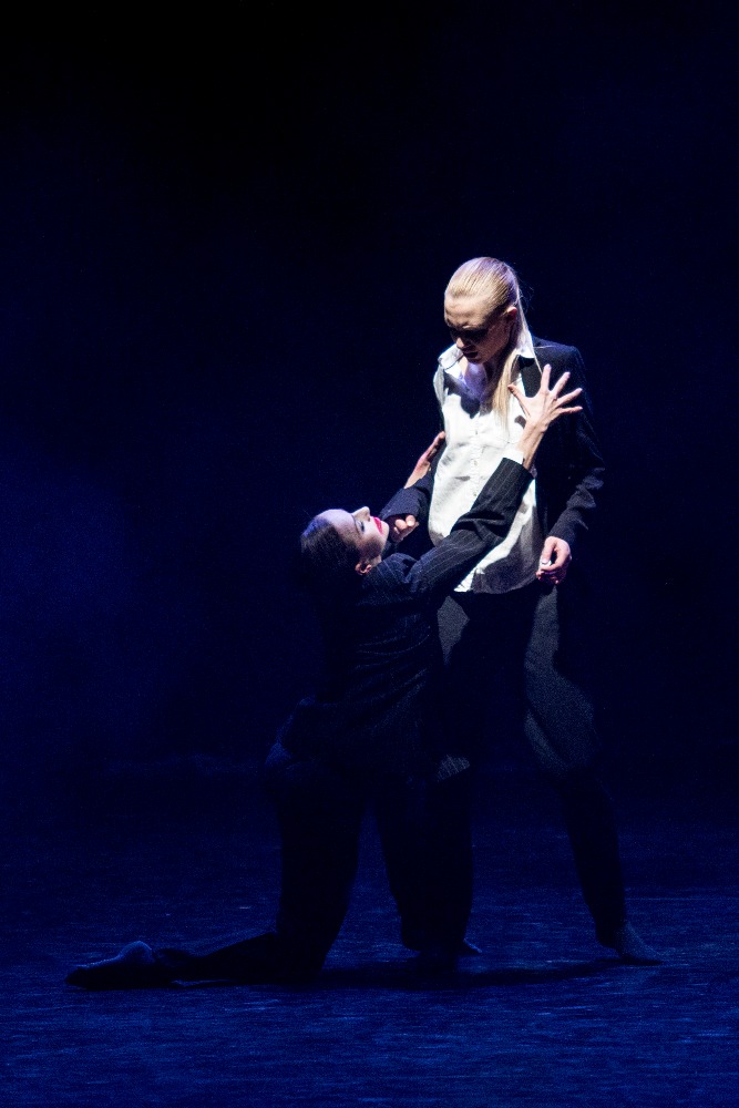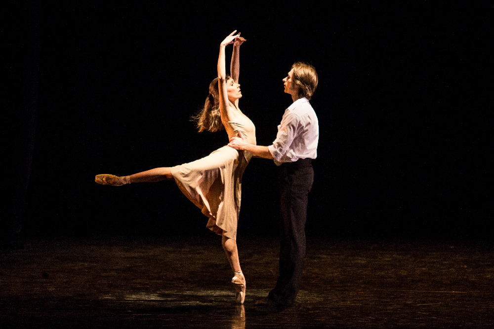 V programu se opakovala choreografie 23:47 Benjamina Hussona zobrazující veselou a vážnou tvář kavárny pár minut před zavírací hodinou. V první části se snaží roztančit své kolegy Gianvita Attimonelliho a Sergeie Gherciu na slavnou skladbu In the Mood z repertoáru Glenna Millera. Ani na repríze jsem si nemohla pomoci od dojmu, že tahle nahrávka je podivně pomalá, pročež i choreografie ztrácí dynamiku. V provedení dominují prvky klasického tance spojené jen s několika málo náznaky jazzu, a to spíš vnějškově a ve snaze o pohybové vtípky. Klasickou variaci lze vystavět prakticky na jakoukoli hudbu, konec konců Petr Zuska to dokázal i na hip hop, ale tahle choreografie je nějak těžká… Druhou polovinu čísla tvoří neoklasický duet, kdy najednou mizí prostředí lokálu a dva mladí lidé se setkávají zřejmě jen v představách. Tančí Pauline Puicercus a Dmytro Tenytskyy a choreografie je sympaticky čistá, s množstvím zvedaček spojených s rotací, provedených s jistotou partnerské souhry.