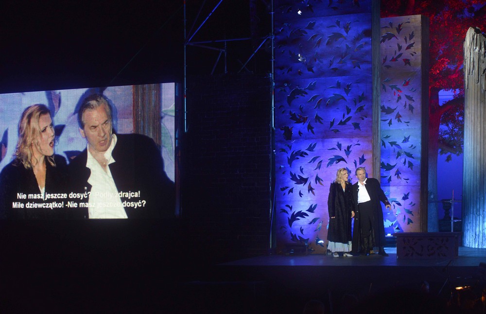 Začátek své operní sezony zahájila Wroclawská opera poněkud kuriózně, ale v tom dobrém slova smyslu. Již mnohokráte vystoupil operní soubor mimo svoji budovu, třeba v Hale století, nebo jinde venku mimo ni. Velmi progresivní představení Verdiho Maškarního plesu využilo prostředí bývalého olympijského stadionu a třeba Aida se dávala úplně mimo Wroclaw. Pro představení Rigoletta bylo vybráno efektní prostředí zámku Topasz vzdáleného asi dvanáct kilometrů od Wroclawi. Rekonstruovaný zámek, kde mimo jiné sídlí muzeum automobilových veteránů a je také hotel, jednou již svůj velký otevřený vnitřní prostor místnímu opernímu ansámblu poskytl, a to při uvedení muzikálu Šumař na střeše.