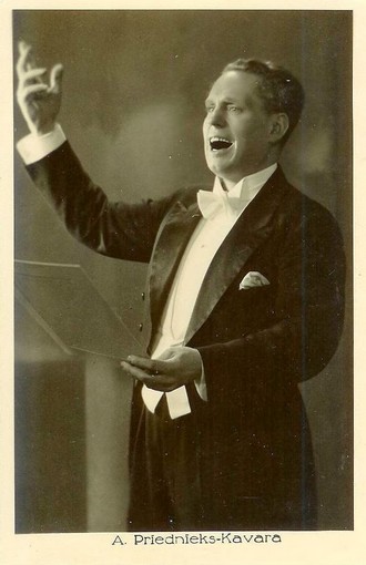 Ak by sme chceli spoznať veľké lotyšské operné hlasy, mali by sme začať s Artūrsom Priednieksom Cavarom.Počas svojho života mal zmluvy s opernými domami vo Viedni, Berlíne, Buenos Aires či v Zürichu a bol to práve on, kto prebudil vo svete záujem o lotyšských skladateľov. Je tak paradoxom, že zomrel pozabudnutý v Amerike, kde emigroval a až súčasná generácia lotyšských muzikológov sa vracia k jeho odkazu. K jeho menu sa viaže aj účinkovanie v nemeckej dráme Biely diabol, ktorá pôvodne vznikla ako nemý film, zvuková stopa bola pridaná až neskôr.