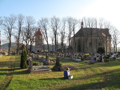 24. srpna Heřmánkovice – i tam je za kostelem rozlehlý hřbitov.