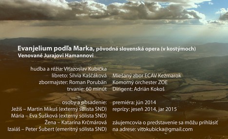 V tomto s vami celkom nesúhlasím. Evanjeliá i ostatné témy Biblie majú v sebe veľa dramatického, najmä keď si ich dáme do súvislosti so zápasom dnešného človeka o svoju identitu, o pochopenie toho čím je a kam smeruje… Tento pohľad Kristovho poslania a odkazu pre súčasnosť ešte zvyšuje ich dramatickosť, pretože sa dotýka, takpovediac, nášho každodenného života, jeho morálky, etiky, empatie k jednotlivcom a celému ľudskému pokoleniu po mnohé tisícky rokov… Moje opery sa skladajú väčšinou z árií, v niektorých prípadoch podporených zborom s inštrumentálnymi medzihrami. Zvyčajne sú uvedené krátkou predohrou. V posledných operách (Evanjelium podľa Jána, Jakub Kray, Evanjelium podľa Marka) používam aj hovorené slovo – quasi rozprávača, čo možno pripomína oratoriálnu tradíciu. Ale približuje to aj formu opery k dnešnému poslucháčovi.