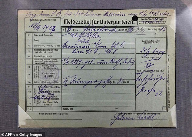 Dokument o změně Hitlerovy adresy 1909 (foto Joe Klamar AFP)