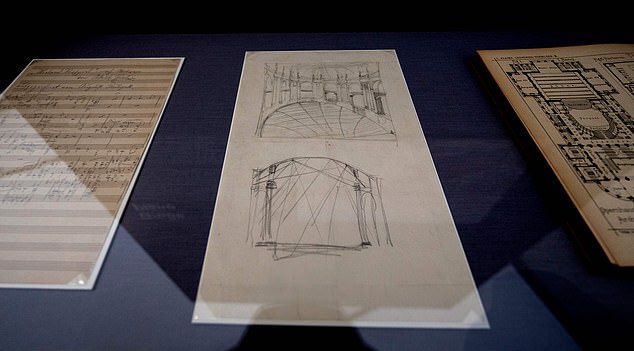 Hitlerovy skicy divadelní architektury (foto Joe Klamar AFP)