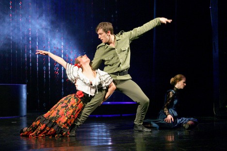 Slovenské národné divadlo dáva možnosť odprezentovať na svojej scéne tvorbu aj ostatným slovenským divadlám. 23. apríla sme mali možnosť v historickej budove Slovenského národného divadla vidieť tanečnú drámu choreografky Dany Dinkovej Carmen (hudba: Georges Bizet, Rodion Ščedrin), ktorú podľa novely Prospera Mériméeho sama upravila. Ženský inscenačný tím z Banskej Bystrice (réžia a choreografia: Dana Dinková, dramaturgia: Lenka Horinová, kostýmy: Adriena Adamíková, scéna: Lucia Šedivá) dávala tušiť svojské uchopenie témy. Autorka posúva motívy do súčasnosti a hoci príbeh ostáva rámcovo v rovine pôvodného deja (s istými obmenami obrazov a udalostí) sama sa pýta, čo pre dnešné ženy znamená láska a sloboda, poukazuje na zmenu hodnôt, uprednostňovanie úspechu a bohatstva pred láskou.