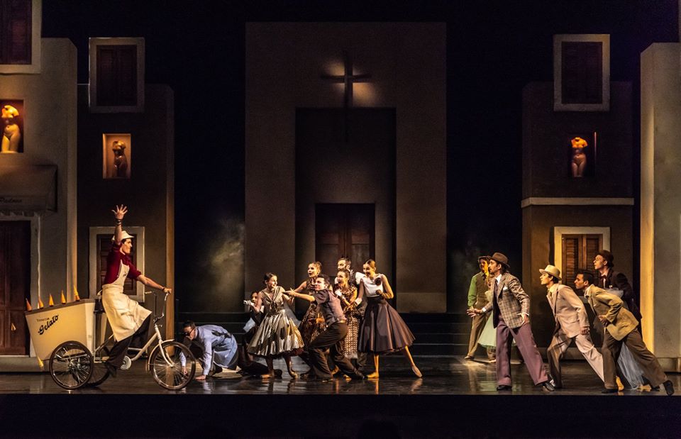 Výtvarný rámec inscenace je velmi příjemný na pohled. Tančí se na jednoduché moderní scéně (Richard Pešek jr.), schematicky naznačené domy se mění v park či pokoj. Dobové kostýmy Aleše Valáška (v poslední době navrhl v Plzni kostýmy k celé řadě inscenací baletních i operních) pečlivě dbají na charakter 50. let. U dam důsledně taneční bohaté šaty a sukně, páni v oblecích a kloboucích. Mužské oděvy však svým charakterem splývají (vyjma extravagantněji oblečeného Petruccia), což velmi znesnadňuje orientaci v ději a na jevišti.