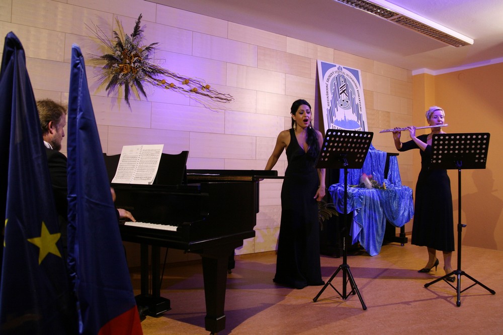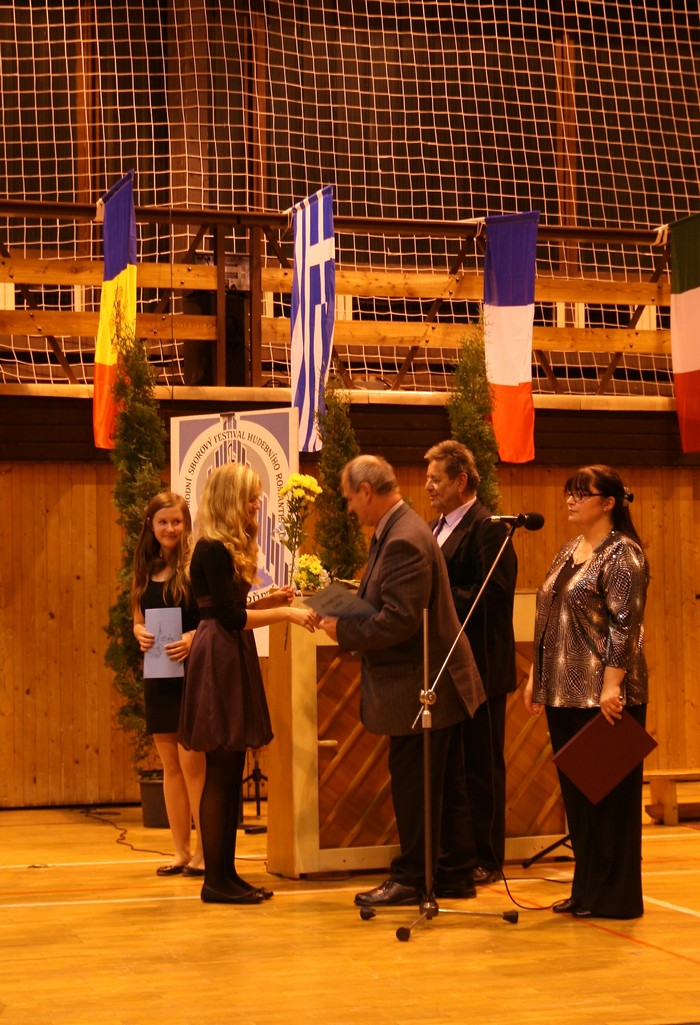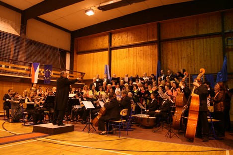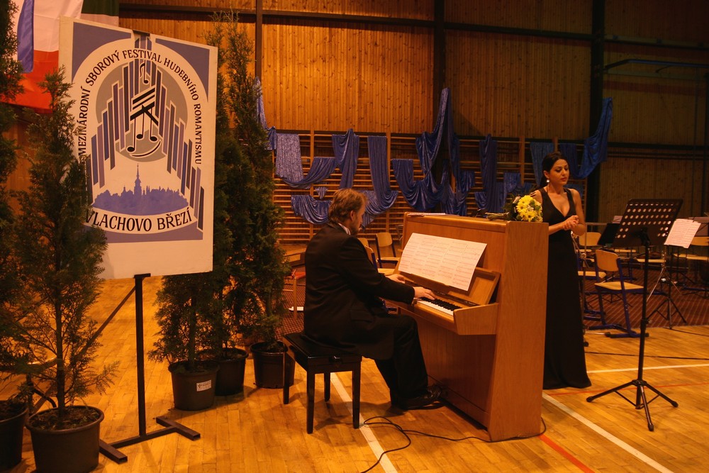 Závěrečný koncert rámovaný Pošumavskou komorní filharmonií s dirigentem Karlem Haymannem měl punc opravdového finále. Sbory spolu s orchestrem se představily právě v onom již nikoliv jen a capella repertoáru, ale v programu kantátovém. Tedy již s doprovodem symfonického orchestru. A musím zdůraznit, že amatérského orchestru obdivuhodných kvalit. Jistě, v orchestru hrají učitelé hudebních škol, které těžko označovat za amatéry. Ale oni se touto činností prostě neživí, v tom je ta hlavní dělící čára. A navíc v orchestru hrají i představitelé jiných profesí. Celek má pěknou souhru, dobré ladění, při poslechu máte příjemné pocity solidní profesionality. A pro sbory je jistě požitek, zaměnit na chvíli a capella literaturu za souhru s orchestrem. Tento závěrečný koncert je v rámci soutěží opravdu specifický a krásně podtrhuje daný styl romantismu, ve kterém právě ona kantátová tvorba má velký akcent! Zazněla Gounodova Missa brevis, Smetanova jedinečná kantáta Česká píseň (bez 4. části), ale také tolik populární sbor otroků z Verdiho opery Nabucco. Jak je zřejmé, dramaturgie romantismu dominovala. Ale také vstupy sólistů byly ve večeru víc než jen zajímavým doplněním sborového finále. Velmi pěkné vystoupení v sólovém oboru předvedla mladá sopranistka z Arménie Ani Vardanyan. Barevně zajímavý témbr sopránu, kterému říkáme soprán jižního typu, podmanivého, neboť nevšedního charakteru. Za doprovodu klavíristy Jana Tláskala ze Základní umělecké školy ve Vimperku, předvedla árie z Pucciniho známých oper. Lauretta z Gianni Schici je pro její soudobý naturel jako stvořená, Tosca je ještě otázkou dalšího vývoje, který by u této talentované zpěvačky měl ale promptně nastat. Pokud bude dobře nasměrovaná, aby dotáhla plynulost v dlouhodechých frázích bez dynamického zvýrazňování výšek, a ještě trošku precizněji vypracovala pianovou dynamiku – pak by Ani Vardanjan nemusela působit na Základní umělecké škole ve Vlachově Březí dlouho. Pro lyrický sopránový obor má zřejmé nadprůměrné dispozice. Ano, vím, lyrický soprán není u divadel ten nedostatkový. Podle legendy Naděždy Kniplové jimi údajně můžeme přehradit Vltavu a způsobit další povodeň, jak mi jednou docela vážně líčila… Ale zde se jedná o soprán krásně barevný, naprosto netuctový! A věk dvacet sedm let, jsou-li mé informace správné, tak to bych radil neprodlévat a snažit se. Pro soprán dívčích typů je třeba hledat odraz do profese, dokud nezačne zvonit brzká hrana dívčího oboru. Altistky to v tomto směru mají jistě lepší. Rovněž erudovaná flétnistka Petra Cortijo Aragonés, opět ve spolupráci s flexibilním klavíristou Janem Tláskalem, byli velkým obohacením večera. Před finále kantátových skladeb vystoupily ještě s ukázkami jiného typu programu již zmíněné sbory, o kterých jsem hovořil v souvislosti s přehlídkou.+++