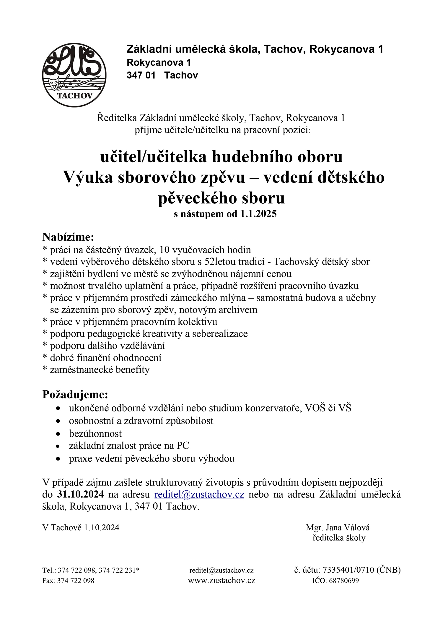 Inzerce ZUŠ Tachov přijme učitele sborového zpěvu Publikováno 25/10/2024 sdílejte: 0 minut čtení sdílejte: TémataSeznam inzerátů Sdílet článek Facebook email zkopíruj odkaz vytisknout sdílejte: Předchozí článek Mezinárodní pěvecká soutěž Antonína Dvořáka: 58 let hledání nových talentů Další článek Musica Florea sahá opět po romantismu: Má vlast v dobově poučené interpretaci brzy zazní v Praze 0 0 hlasy Ohodnoťte článek Odebírat Přihlášení Upozornit na nové a další komentáře nové odpovědi na můj komentář Label {} [+] Jméno* E-mail* Webová stránka Label {} [+] Jméno* E-mail* Webová stránka 0 Komentáře Nejstarší Nejnovější Most Voted Inline Feedbacks Zobrazit všechny komentáře Načíst další
